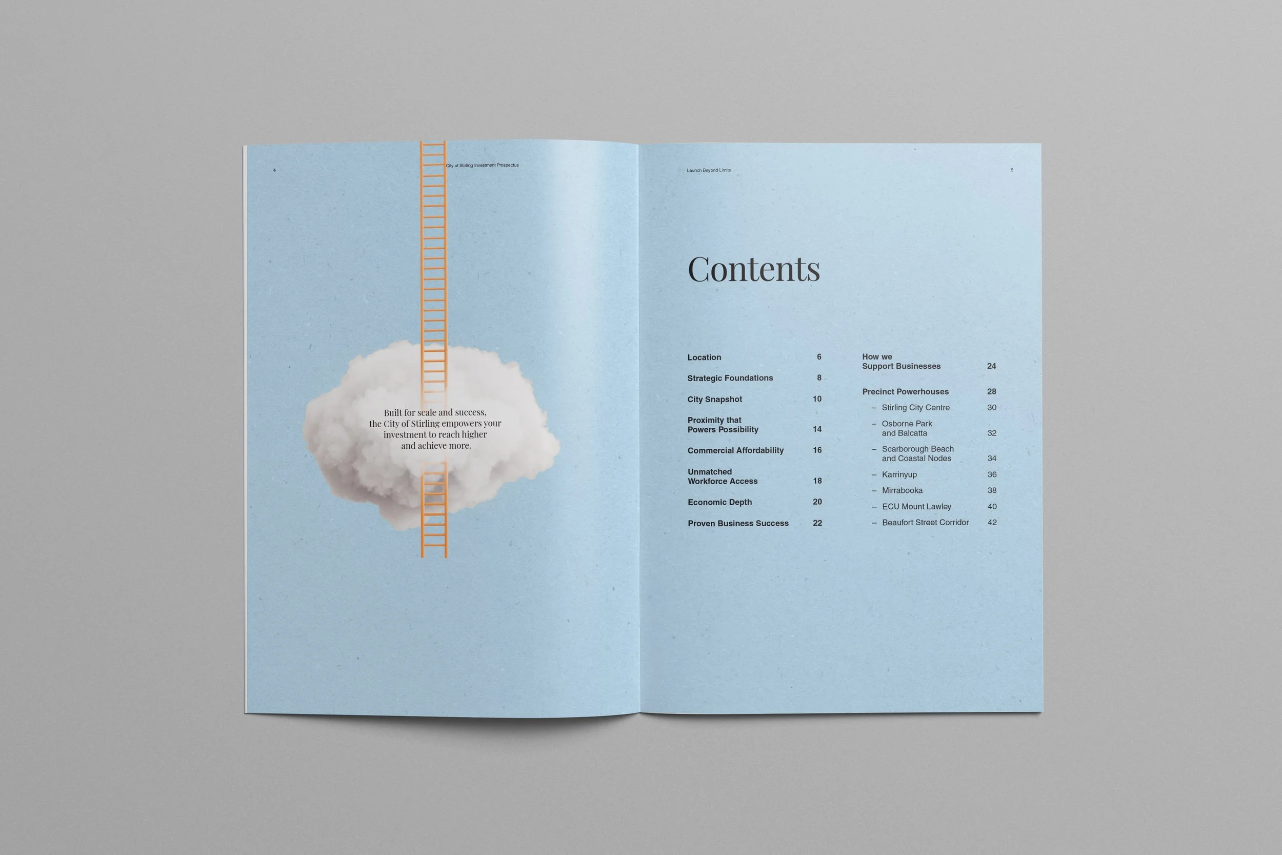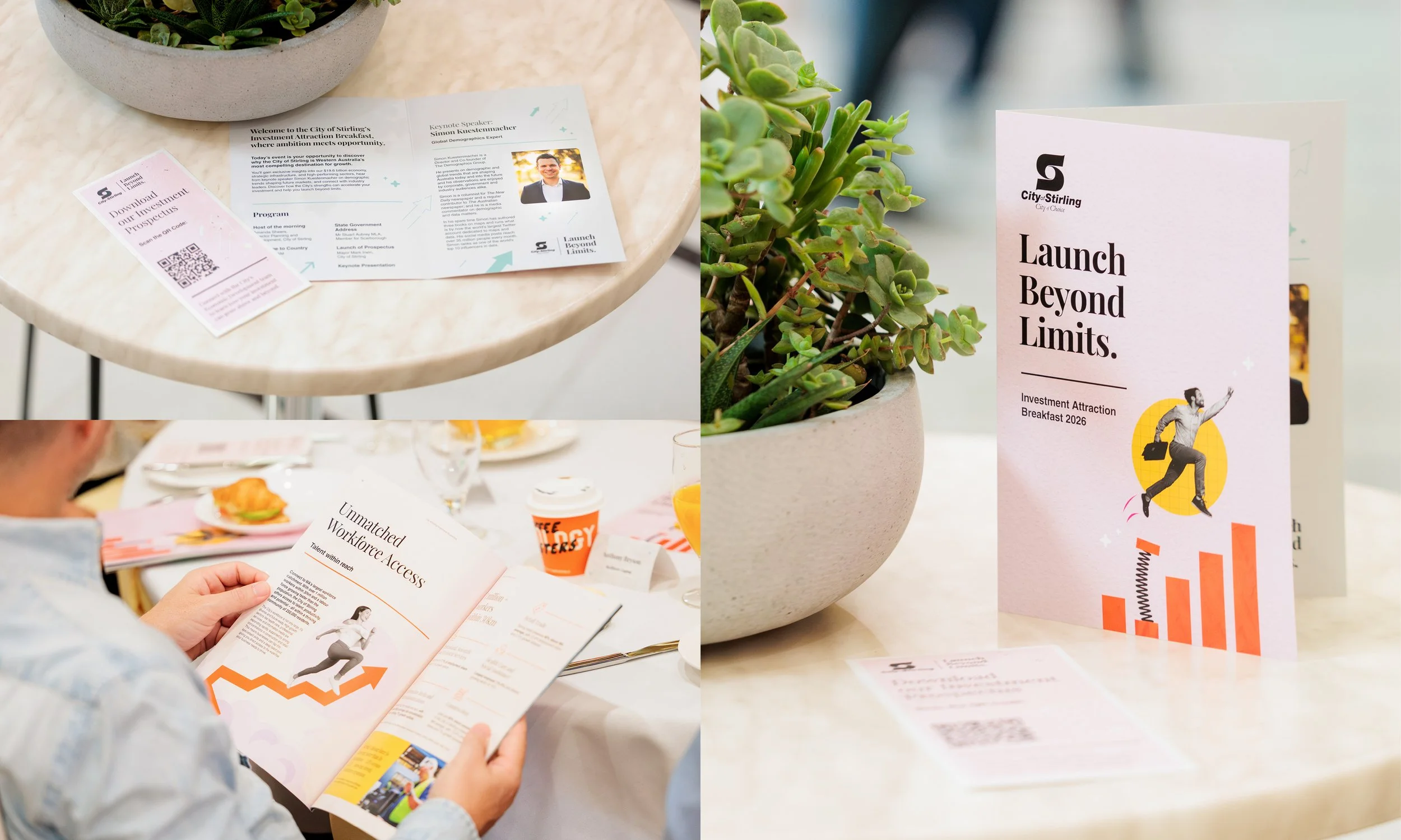 The brand identity brings the Launch Beyond Limits spirit to life. It’s forward-thinking and full of momentum, reflecting the City of Stirling as a place where investments thrive. This is a brand that sparks ambition, removes obstacles, and shows investors that there’s no ceiling to what can be achieved here.